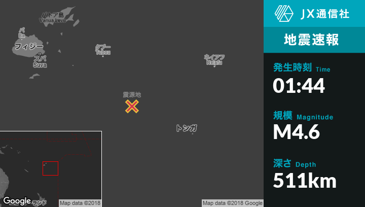 | 震源地 | フィジーのNdoi Islandから東北東132kmの地点 |