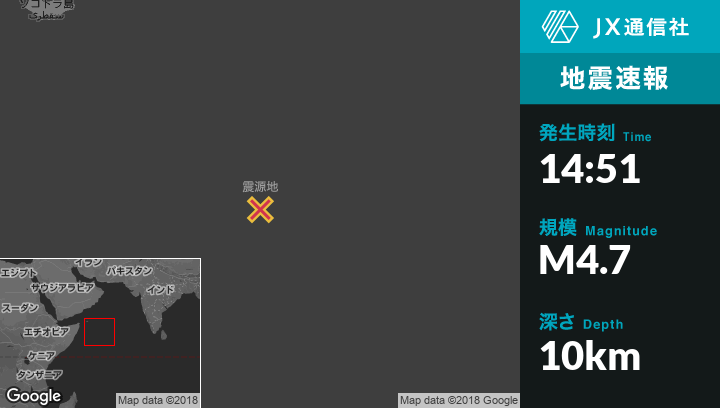 12月30日 14:51頃、イエメンのTamridaから南東689kmの地点でM4.7の地震がありました。