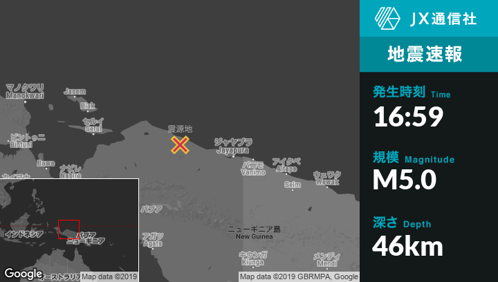 | 震源地 | インドネシアのAbepuraから西北西188kmの地点 |