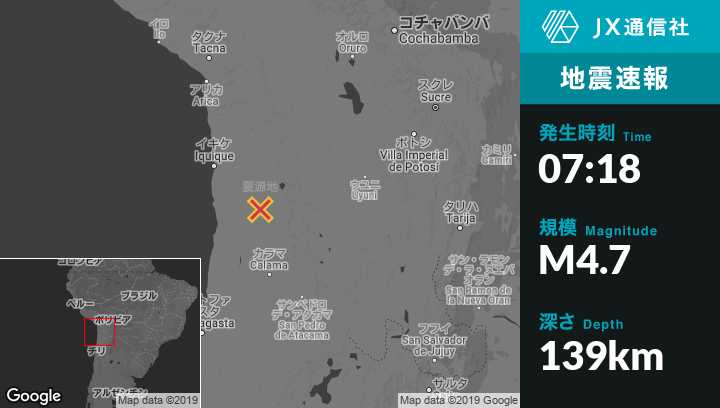 | 震源地 | チリのIquiqueから南東136kmの地点 |