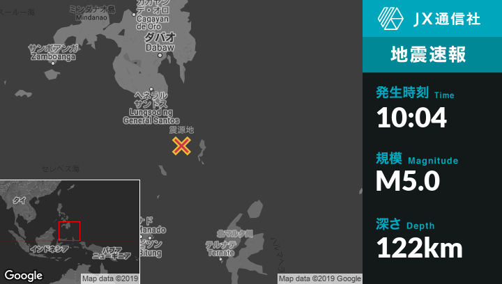 | 震源地 | フィリピンのSaranganiから南東127kmの地点 |