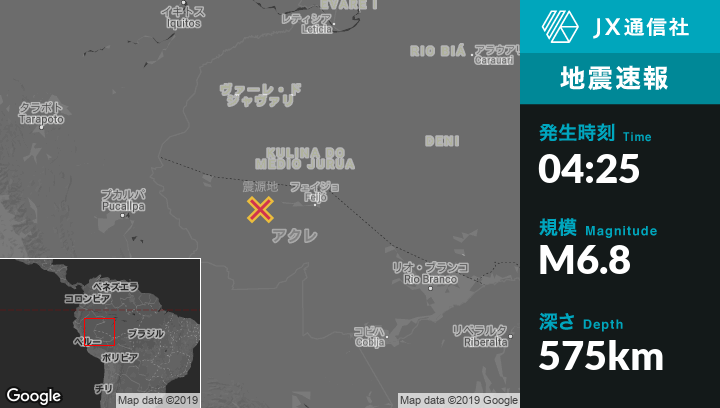 | 震源地 | ブラジルのTarauacaから西89kmの地点 |