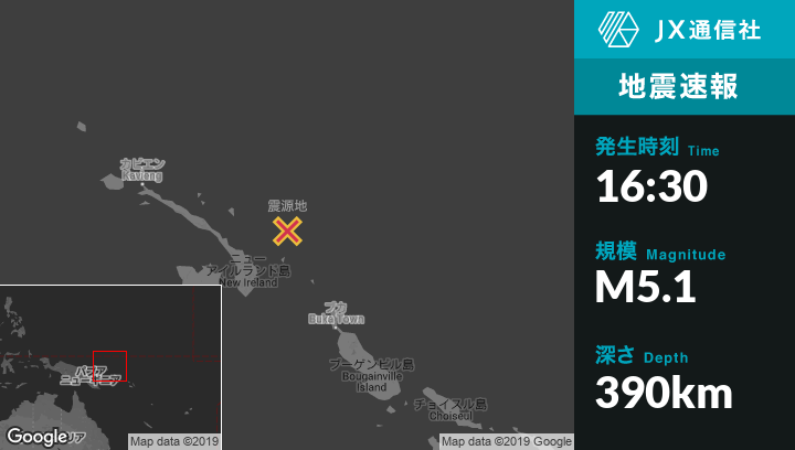 | 震源地 | パプアニューギニアのTaronから北北東141kmの地点 |