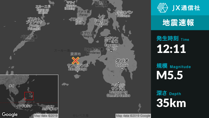 | 震源地 | フィリピンのSioconから北西29kmの地点 |