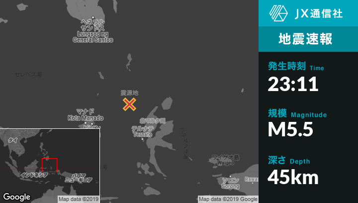 | 震源地 | インドネシアのTobeloから西北西155kmの地点 |