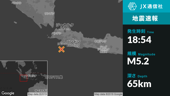 | 震源地 | インドネシアのCibungurから南41kmの地点 |