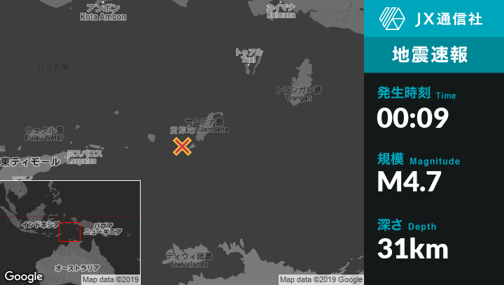 | 震源地 | インドネシアのSaumlakiから西72kmの地点 |