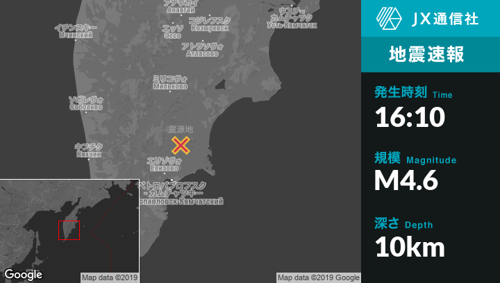 | 震源地 | ロシアのYelizovoから北北東74kmの地点 |