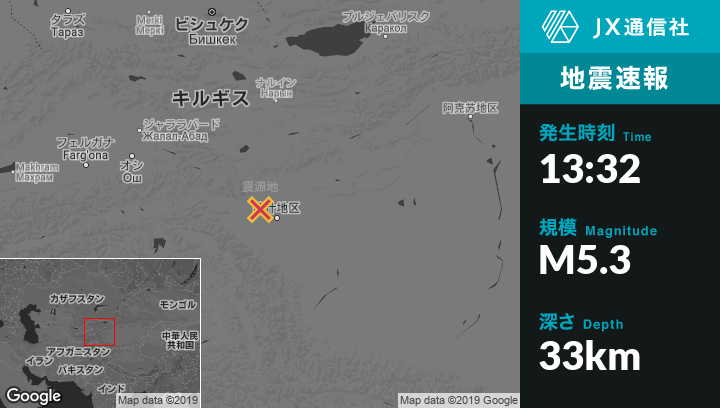 1月12日 13:32頃、中国のKashiから北西39kmの地点でM5.3の地震がありました。