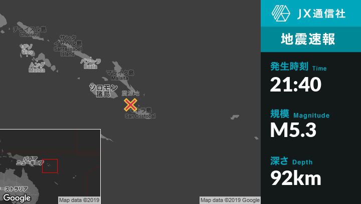 | 震源地 | ソロモン諸島のKirakiraから西北西72kmの地点 |