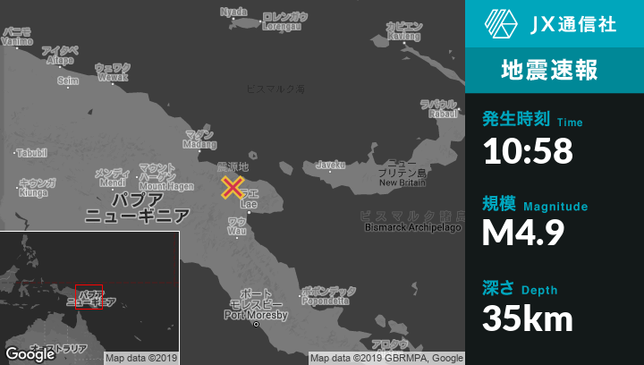 | 震源地 | パプアニューギニアのKainantuから東北東89kmの地点 |
