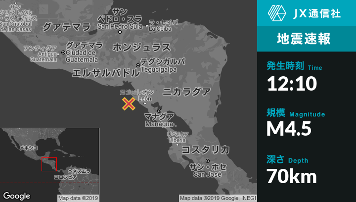 | 震源地 | ニカラグアのJiquililloから南西29kmの地点 |