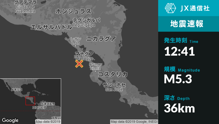 | 震源地 | ニカラグアのMasachapaから南南西56kmの地点 |
