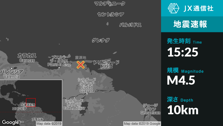 | 震源地 | ベネズエラのEl Pilarから東5kmの地点 |