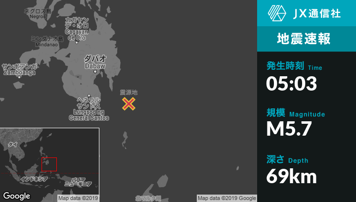 | 震源地 | フィリピンのPondaguitanから東南東99kmの地点 |