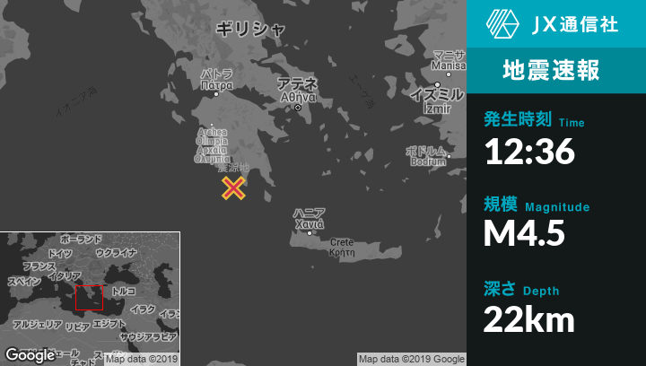 | 震源地 | ギリシャのKoroniから南南東36kmの地点 |