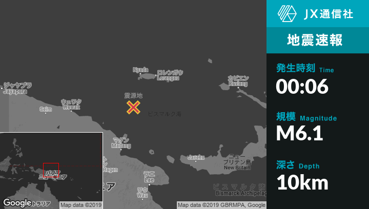 | 震源地 | パプアニューギニアのLorengauから南西177kmの地点 |