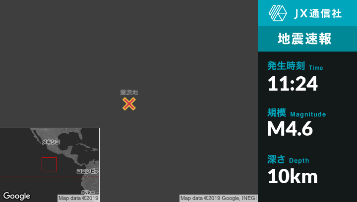 1月19日 11:24頃、フランスのClipperton Islandから東南東684kmの地点でM4.6の地震がありました。
