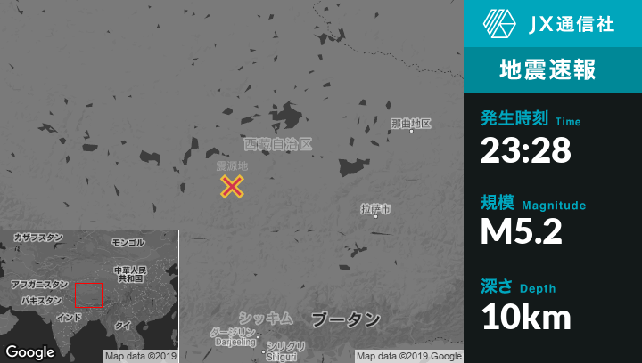 | 震源地 | 中国のJiajuedibuから西南西112kmの地点 |