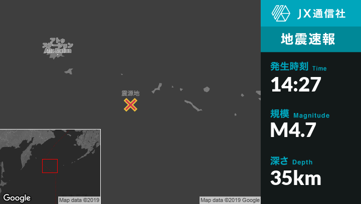 | 震源地 | アラスカのBuldir Islandから南南東86kmの地点 |