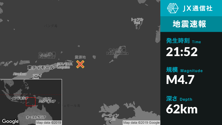 | 震源地 | インドネシアのSaumlakiから西290kmの地点 |