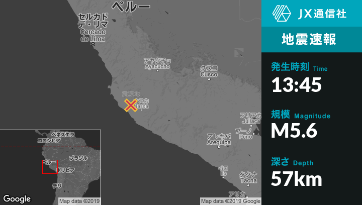 | 震源地 | ペルーのRio Grandeから西19kmの地点 |