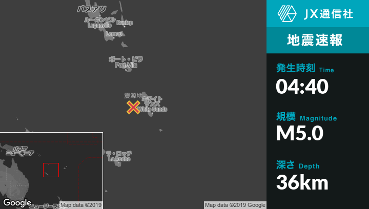 | 震源地 | バヌアツのIsangelから北西79kmの地点 |