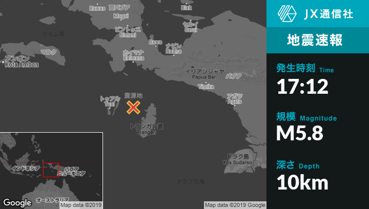 | 震源地 | インドネシアのDoboから西北西58kmの地点 |