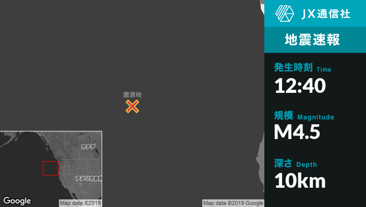 1月27日 12:40頃、オレゴンのWaldportから西463kmの地点でM4.5の地震がありました。