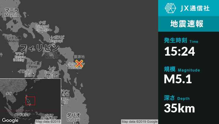 | 震源地 | フィリピンのHernaniから北東34kmの地点 |