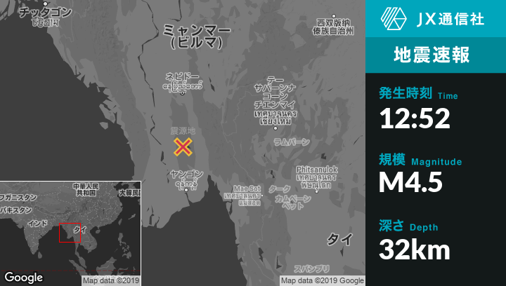 | 震源地 | ミャンマーのPyuから西南西42kmの地点 |