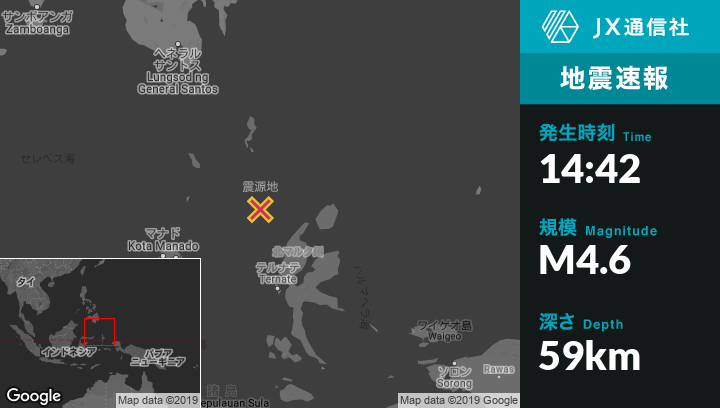| 震源地 | インドネシアのTobeloから北西149kmの地点 |