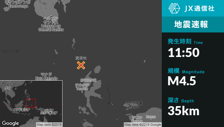 | 震源地 | インドネシアのTobeloから北西138kmの地点 |