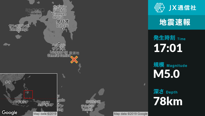 | 震源地 | フィリピンのSaranganiから東南東110kmの地点 |