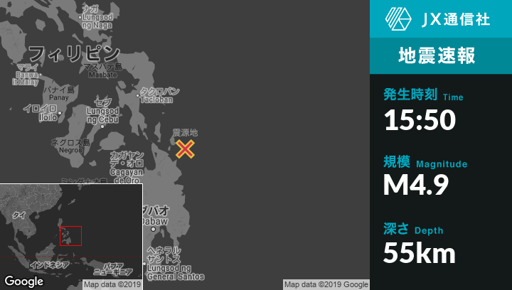 | 震源地 | フィリピンのGeneral Lunaから東29kmの地点 |