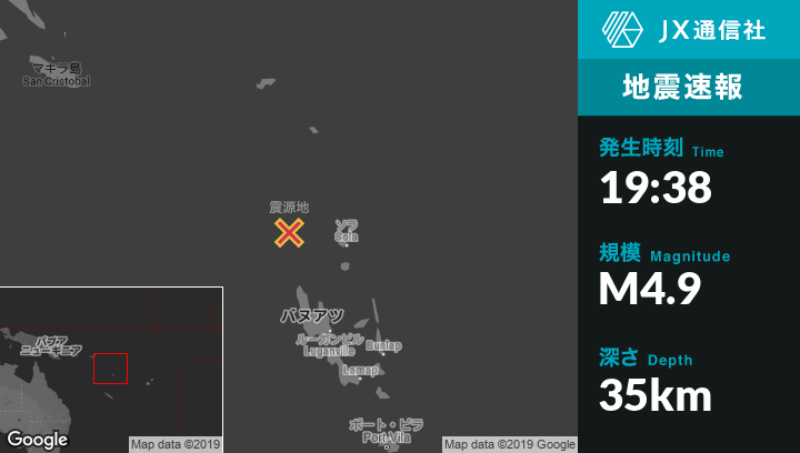 | 震源地 | バヌアツのSolaから西北西130kmの地点 |