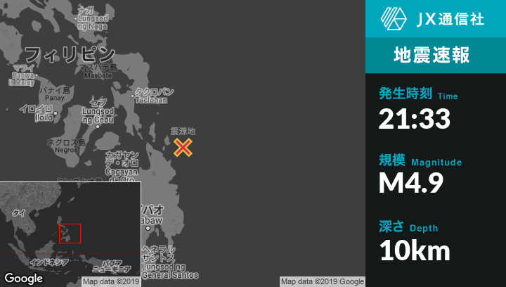 | 震源地 | フィリピンのGeneral Lunaから東42kmの地点 |