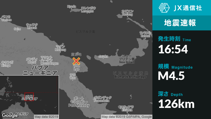 | 震源地 | パプアニューギニアのLaeから北103kmの地点 |