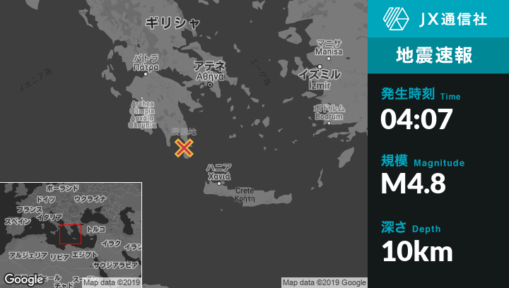 | 震源地 | ギリシャのGefyraから南南西22kmの地点 |