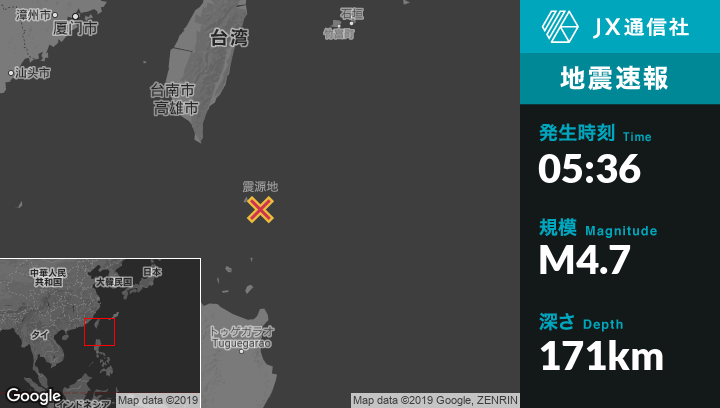 | 震源地 | フィリピンのBascoから北東30kmの地点 |