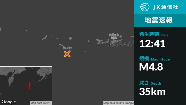 | 震源地 | アラスカのSemisopochnoi Islandから南南西86kmの地点 |