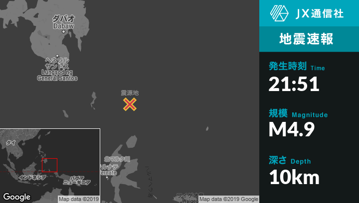 | 震源地 | インドネシアのTobeloから北265kmの地点 |