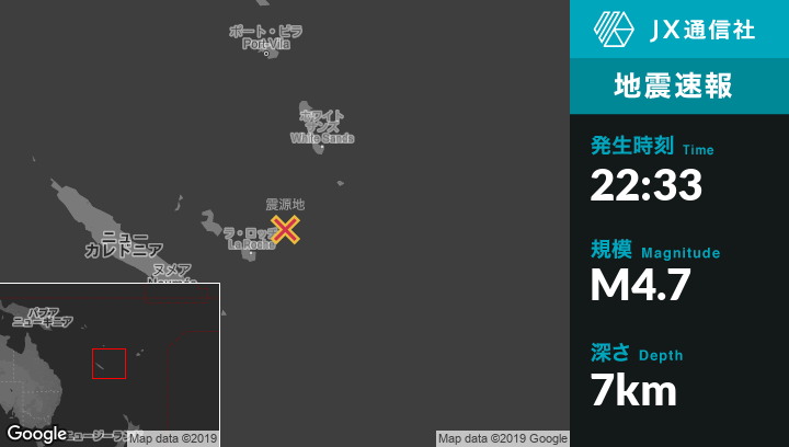 | 震源地 | ニューカレドニアのTadineから北東108kmの地点 |