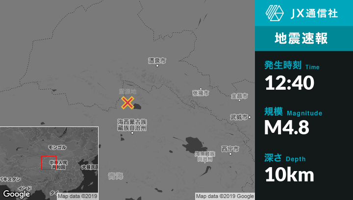 | 震源地 | 中国のDelingha Shiから北131kmの地点 |