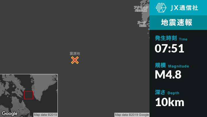| 震源地 | グリーンランドのNuukから西南西304kmの地点 |