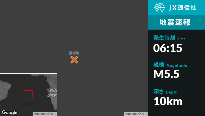 | 震源地 | セントヘレナのJamestownから西南西855kmの地点 |