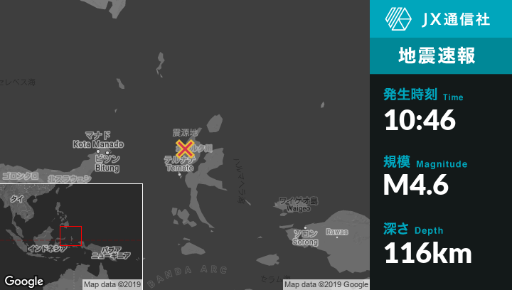 | 震源地 | インドネシアのTobeloから西53kmの地点 |
