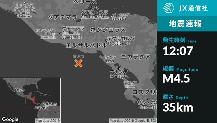 2月24日 12:07頃、エルサルバドルのLa Libertadから南99kmの地点でM4.5の地震がありました。