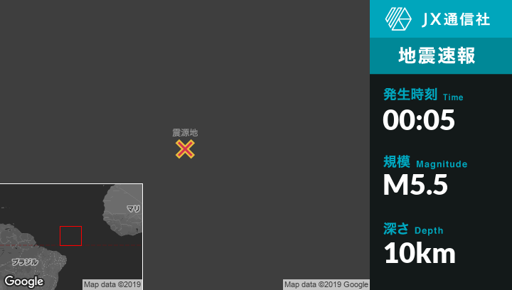 | 震源地 | ブラジルのFernando de Noronha (Distrito Estadual)から北898kmの地点 |