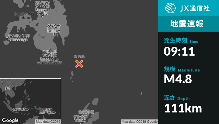 | 震源地 | フィリピンのPondaguitanから南東178kmの地点 |